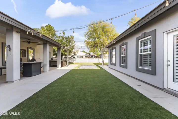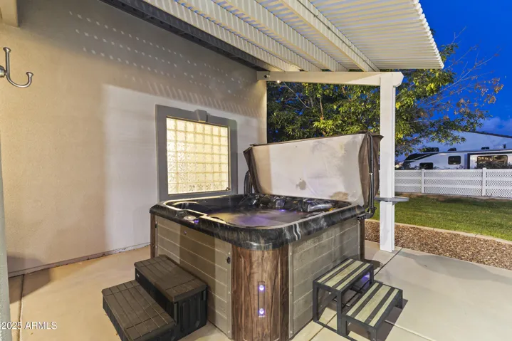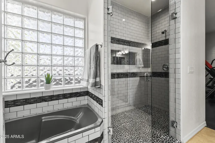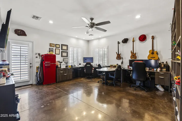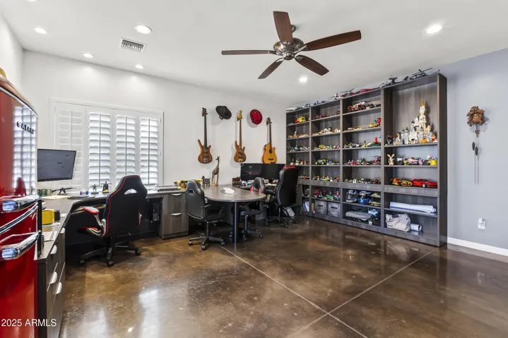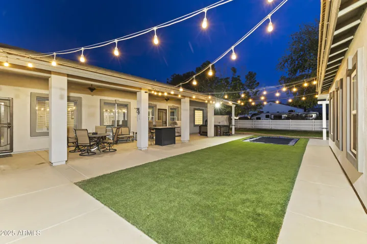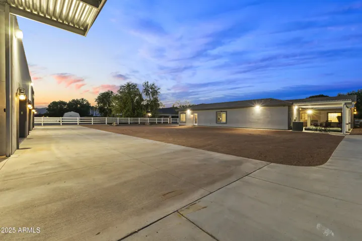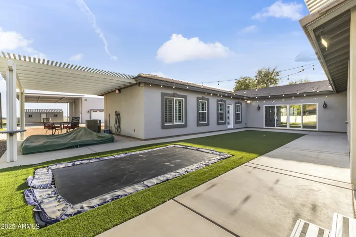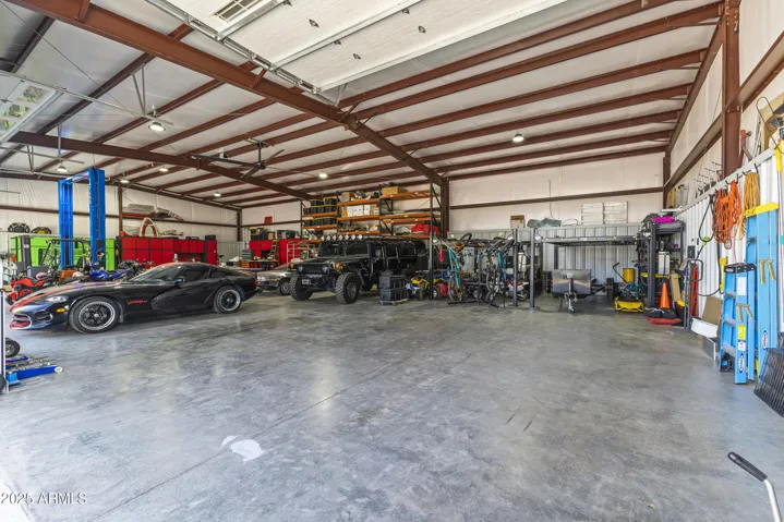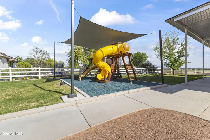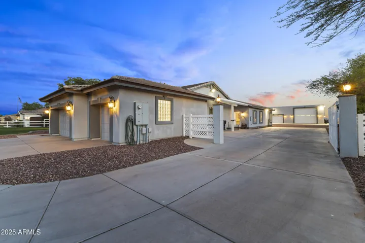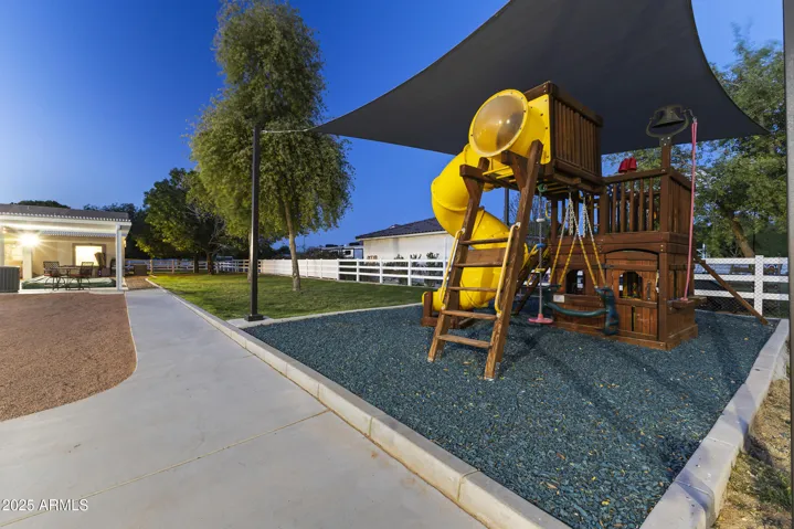 Discover luxury living in Waddell! 1 acre of flood irrigated property. This stunning home features recent upgrades including newer HVAC systems and a detached metal shop (3,375 sq ft) with synthetic stucco exterior, fully insulated, 3 car lifts & a forklift. Large 60’x30′ shade structure with concrete base, LED lighting, 10′ ceiling fan, two 2 car bays & additional RV bay. The kitchen boasts granite counters, mosaic tile backsplash & stainless appliances. Dual primary suites, each with walk-in showers featuring dual heads, accent tile & seamless glass surround. Additional highlights include a game room with built-in shelves & Murphy bed, dedicated office. 3-car garage with climate control, aluma-wood pergolas, kids playset with shade sail & lots of mature trees & grass. See upgrades list