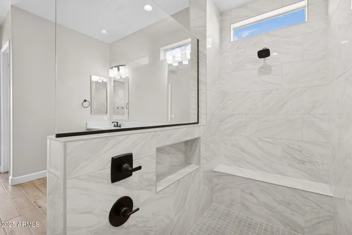 BRAND NEW 3 BED, 3.5 BATH with enclosed study, flex retreat and 4-car garage; gorgeous gourmet kitchen with shaker cabinets that extend to the ceiling, huge center island and GE stainless appliances, plank tile flooring, upgraded carpet/pad throughout, added cabinets and opening shelving in dining area, plank tile flooring, upgraded carpet/padding throughout; 2-tone paint, large energy efficient windows with 16′ sliding glass door in family room and extended covered patio; stainless GE appliances including 6 burner gas cooktop, hood vent, wall micro/oven and refrigerator; enclosed study with glass doors; owner’s bath with huge tiled supershower with wall mounted showerhead and ceiling showerhead; floating shelving & lower cabs in dining area; 2×6 construction & extensive new home warranty
